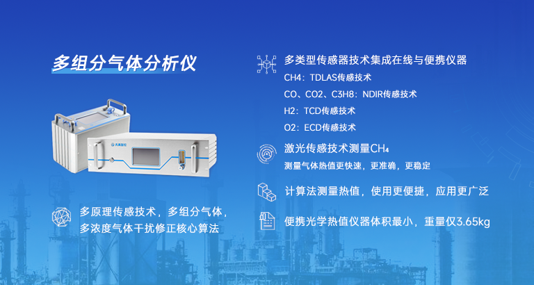 采用進口NDIR非分光紅外傳感器,長壽命電化學傳感器,運用先進的數字處理技術,可同時測量沼氣中CH4、CO2、H2S、O2、CO、H2的體積濃度,根據氣體濃度值快速準確計算出相應的熱值。