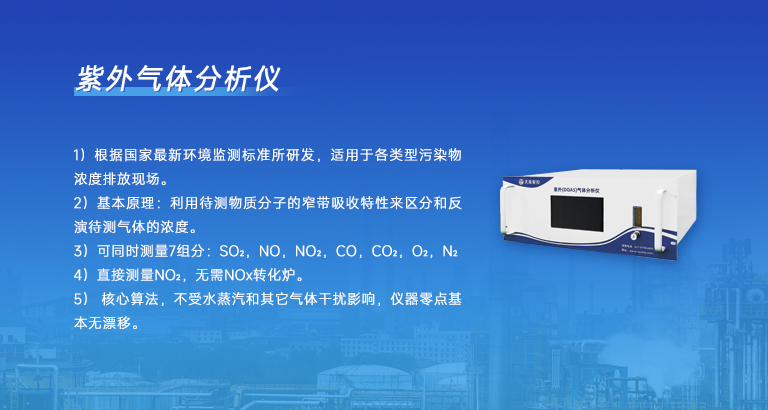 該分析儀基于紫外差分吸收光譜技術(DOAS)和化學計量學算法(PLS),能夠測量SO2、NO、NO2、O2、NH3、CO、CO2、Cl2、O3、H2S、HCl、CH3I等氣體濃度,具有測量精度高、可靠性強、運行成本低、響應時間快、量程跨度大、應用范圍廣等特點。