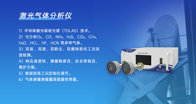 在線激光氣體分析儀TY-6500采用國際最先進的TDLAS激光技術,主要用于測量各種氣體中的HF、HCL、O2、CO、CO2、H2O、O2、NH3、CH4?等氣體體積濃度及熱值。
