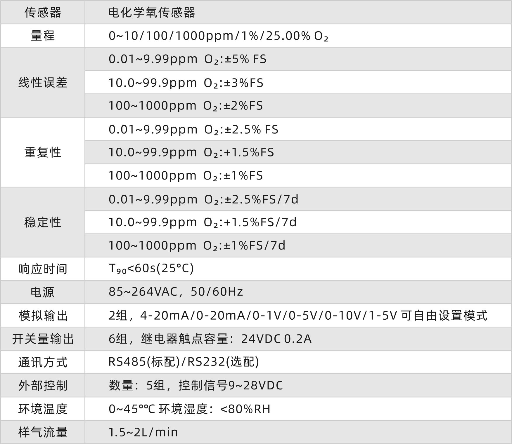 • 氧化鋯氧氣(O2)分析監測儀 采用基于氧化鋯(Zirconia)技術的傳感器,它們能在ppm等級實現出色的精度,具備快速反應時間和長壽命、無損耗等優勢。采用RS485通訊,允許執行遠程校準和獲取測量數據。經過高性能32單位片機對信號進行處理換算,直接計算出氮氧混合氣體中的氧氣濃度值,經由數碼管顯示氧氣濃度值或經推算出的氮氣濃度值。