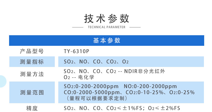 SO2:0-200-2000ppm ;NO:0-200-2000ppm ;CO:0-2000-5000ppm、CO2:0-10-25%、O2:0-25%(量程可以根據要求定制) |