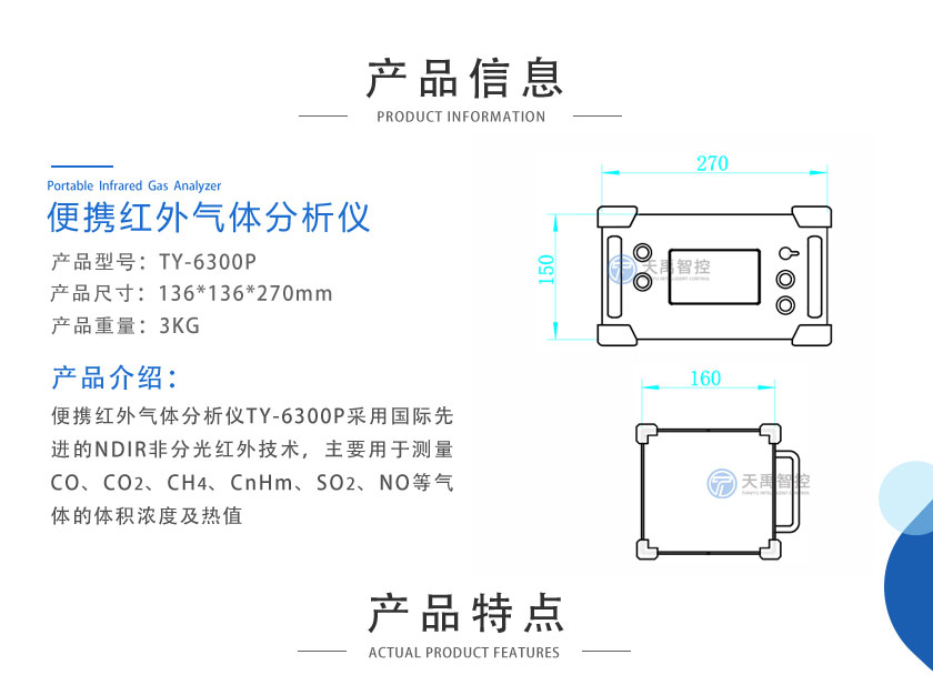 • 便攜紅外氣體分析儀 TY-6300P 采用自主知識產權的NDIR非分光紅外技術,主要用于測量氣體中的CO、CO2、CH4、C3H8、SO2、NO等氣體的體積濃度及熱值。全進口傳感器、測量精度高、結構簡單、維護方便,軟件功能強大,可拓展性強、現場實用性好,目前暢銷國內外。