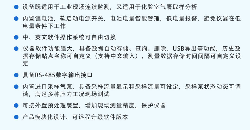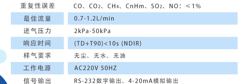 CO、CO2、CH4、CnHm、SO2、NO:≤±1%FS