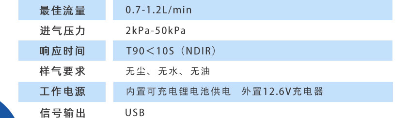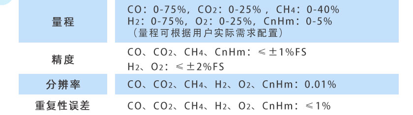 CO/CO2/H2/O2/CH4:0-100%;CnHm:0-10%; O2:0-25% |
