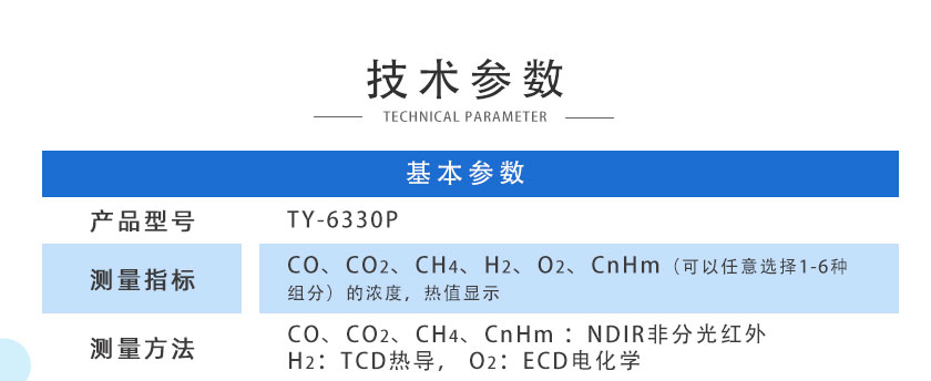 CO/CO2/H2/O2/CH4/CnHm:NDIR; H2:MEMS;O2: ECD |