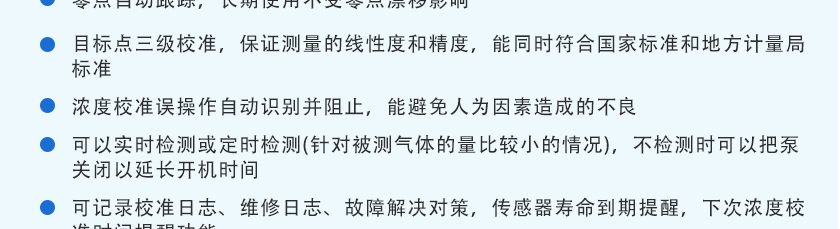 采用進口催化燃燒傳感器和微控制器技術,帶2.5寸高清彩屏實時顯示,無聲光+視覺報警,現場多種氣體濃度 24 小時連續在線監測及溫濕度的測量,適用于各種環境中的可燃氣體濃度檢測,響應速度快,測量精度高,穩定性和重復性好,整機性能居國內領先水平。儀器具有多種超強的電路保護功能,可防止錯接電源、反接電源、電源短路、電源不穩、電源與信號錯解等,導致的儀器損壞。