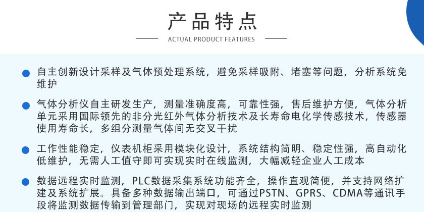 針對填埋氣綜合利用工藝中沼氣濃度監測自主研發的在線氣體分析系統,可對填埋氣中的CH4、CO2、CO、O2,H2S,H2進行動態連續監測。 填埋氣在線氣體系統(TY-8321EX)采用柜式系統,氣體預處理系統及分析儀器等組成;可在復雜工況下在線分析沼氣中的CH4、CO2、CO、O2,H2S,H2(注:單個分析儀可分析1-6個組分)等多個參數。 針對我國垃圾填埋場現場惡劣的工況條件,天禹智控自主研發紅外氣體傳感器、電化學氣體傳感器、利用多年成熟的分析控制技術和預處理取樣技術,創造性的設計提供方案。