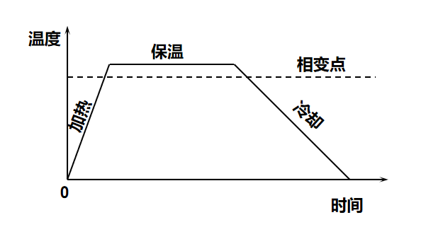 熱處理的方法雖然很多,但任何一種熱處理工藝都是由加熱、保溫、冷卻三個階段組成。下圖為基本的熱處理工藝曲線。
