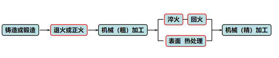 上圖中退火和正火就屬于預備熱處理,它是為了消除前道工序造成的缺陷,為隨后的機械加工和最終熱處理做好準備的熱處理。