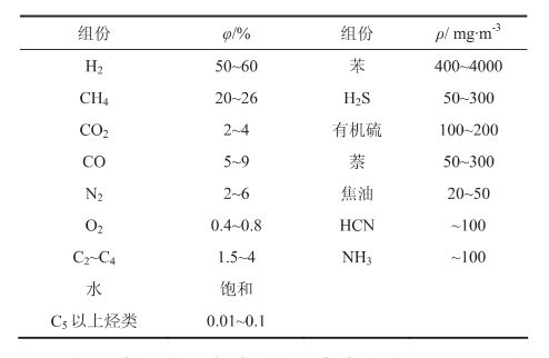焦?fàn)t煤氣由于含有多種雜質(zhì)組分,除了有大量的CH4和一定量的N2、O2、CO、CO2、飽和烴和不飽和烴外,還有少量的C5以上飽和烴、焦油、苯等。