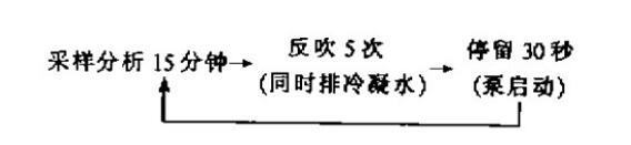 為了適應采樣點工作狀況,進一步提高分析的可靠性,延長某些部件使用周期,對原有執行程序進行了改編,更合理地安排采樣、排放冷凝水、反吹探頭、停留等各段時間。在及時反映煙氣中一氧化碳濃度前提下,適當增加反吹次數,以延長探頭使用壽命。改編后執行程序如下∶