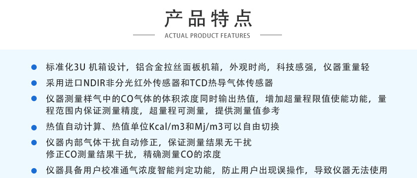 (2)采用進口NDIR非分光紅外傳感器和TCD熱導氣體傳感器。