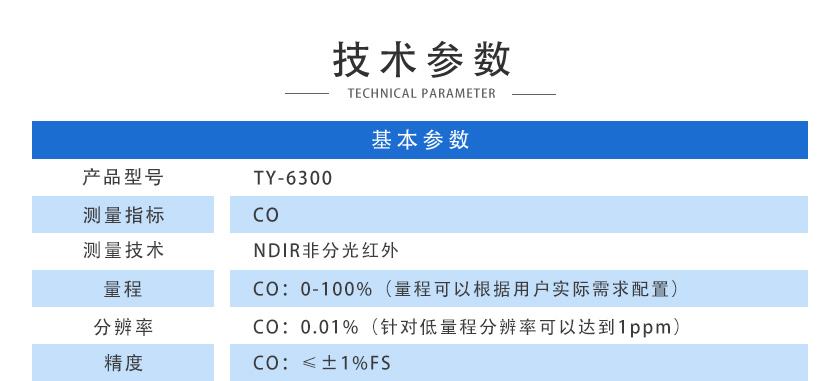(4)分辨率:CO:0.01%(針對低量程分辨率可以達到1ppm)