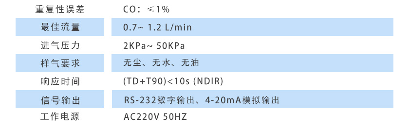 (6)重復性誤差:CO:≤1%