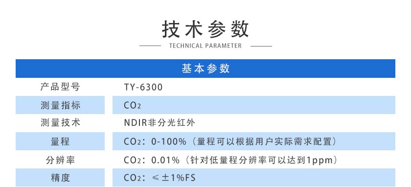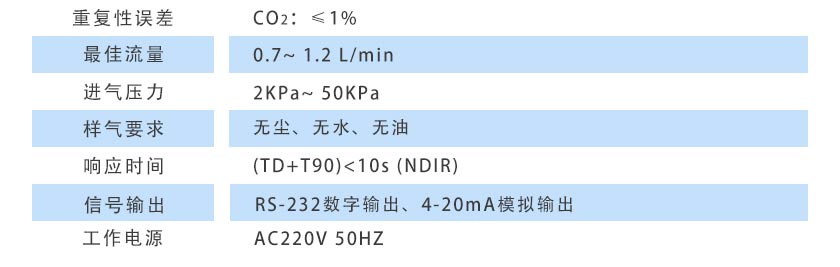 4)分辨率:CO2:0.01%(針對低量程分辨率可以達到1ppm)