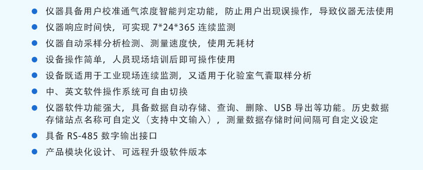 (10)設(shè)備既適用于工業(yè)現(xiàn)場(chǎng)連續(xù)監(jiān)測(cè),又適用于化驗(yàn)室氣囊取樣分析
