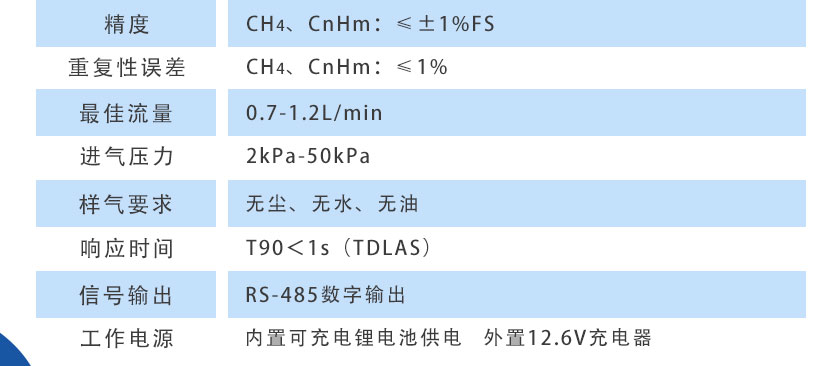 CH4、CnHm:≤±1%FS |