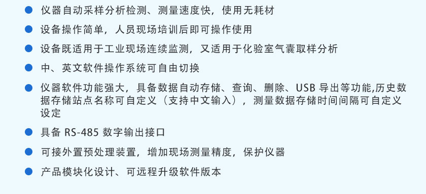 • 在線紅外氣體分析儀 TY-6300 在線紅外氣體分析儀TY-6300采用自主知識產權的NDIR非分光紅外技術,主要用于測量CO、CO2、CH4、C3H8、SO2、NO等氣體的體積濃度及熱值。適用于鋼鐵、化工、煤氣化、生物氣化、節能監測、能效測評等領域,測量焦爐煤氣、高爐煤氣、轉爐煤氣、混合煤氣、發生爐煤氣、生物燃氣等可燃氣體不同成分的體積濃度和熱值。