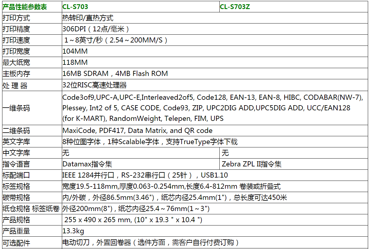 CITIZEN西鐵城CL-S703是一款306分辨率打印精度的重工業(yè)級條碼打印機,打印清晰度高,速度快,重工業(yè)強度等級,32位高速CPU,20M大容量內存,ARCP防皺、防滑和前規(guī)定位結構.打印品質優(yōu)秀、穩(wěn)定、打印頭耐用;主要應用在高要求品質的制造業(yè)、物流、服裝類、行政單位、銀行、公路等客戶群,產品操作極具人性化,提供售后維修服務.