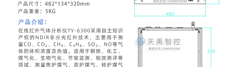 在線紅外氣體分析儀TY-6300采用自主知識產權的NDIR非分光紅外技術,主要用于測量CO、CO2、CH4、C3H8、SO2、NO等氣體的體積濃度及熱值。適用于鋼鐵、化工、煤氣化、生物氣化、節能監測、能效測評等領域,測量焦爐煤氣、高爐煤氣、轉爐煤氣、混合煤氣、發生爐煤氣、生物燃氣等可燃氣體不同成分的體積濃度和熱值。
