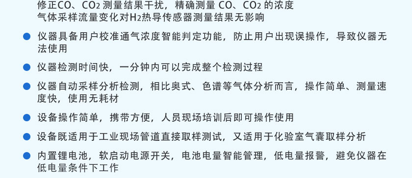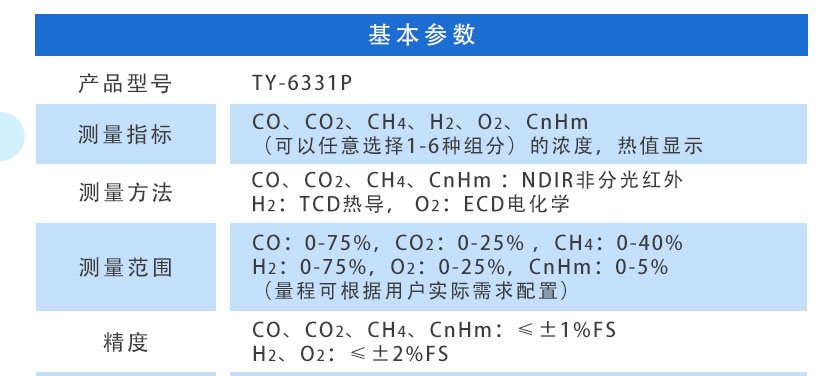 CO、CO2、CH4、CnHm :NDIR非分光紅外;H2:TCD熱導;O2:ECD電化學;