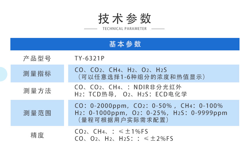 • 便攜紅外煤氣分析儀 TY-6330P 紅外煤氣成分及熱值分析儀采用進口NDIR非分光紅外傳感器,長壽命電化學傳感器和基于MEMS的熱導傳感器,運用先進的數字處理技術,可同時在線測量煤氣、生物燃氣中CO、CO2、CH4、H2、O2、CnHm等六種氣體的體積濃度,根據氣體濃度值快速準確計算出相應的熱值。