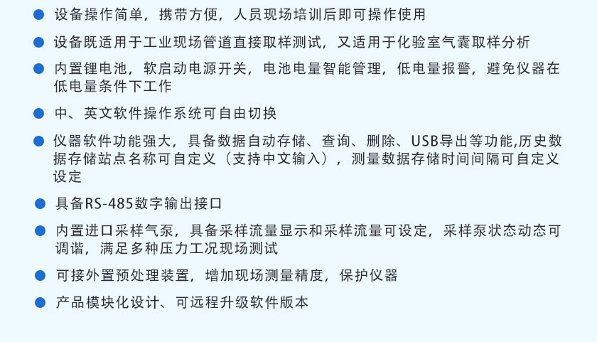 CO:0-2000ppm;CO2:0-50% ;CH4:0-100%;H2:0-1000ppm;O2:0-25%,H2S:0-9999ppm;(量程可根據用戶實際需求配置)